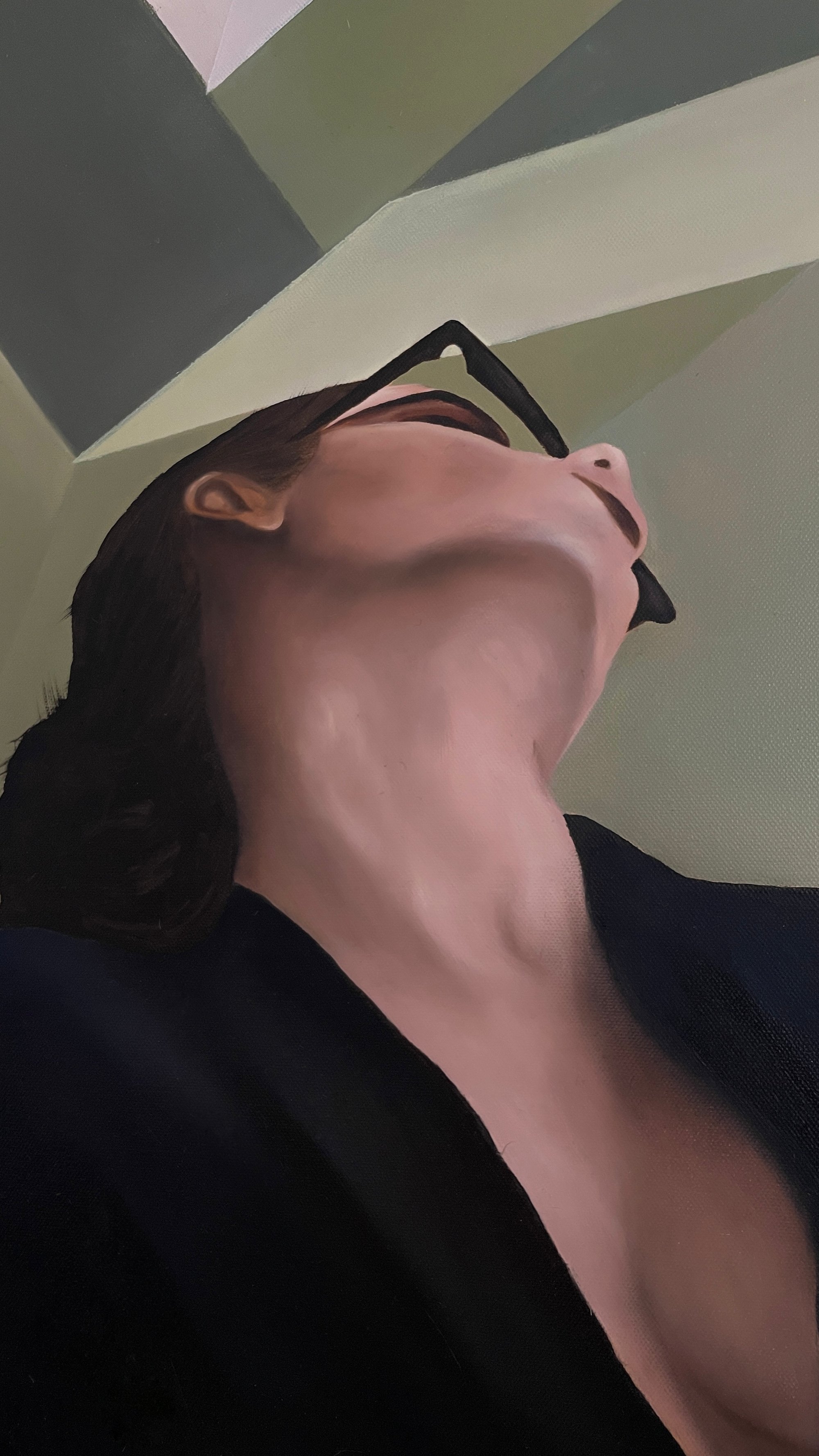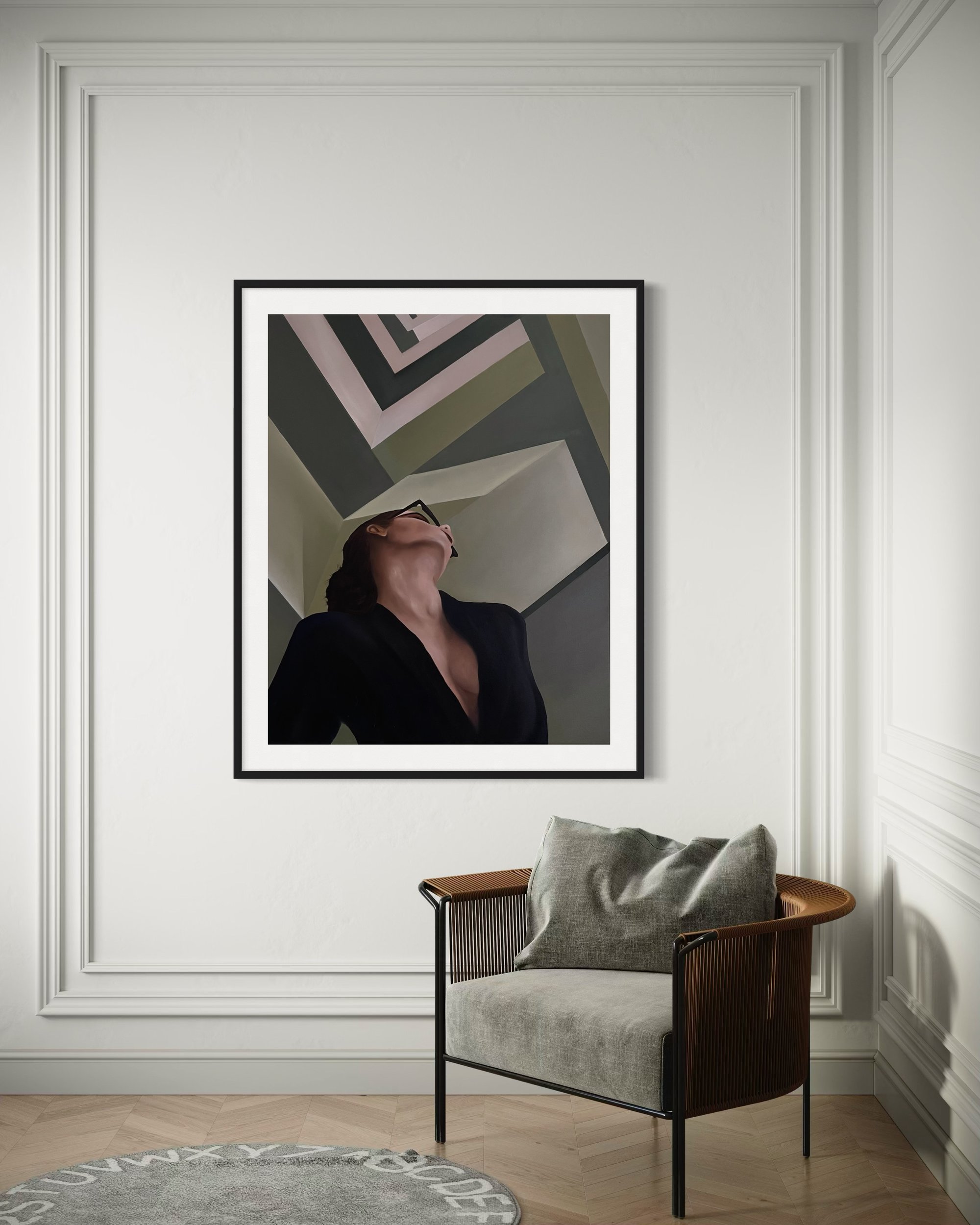Dramatic Exit is a striking 30"x 24" original oil painting that transforms an ordinary moment into something extraordinary. With bold contrasts, architectural geometry, and cinematic perspective, this piece embodies drama, mystery, and elegance.