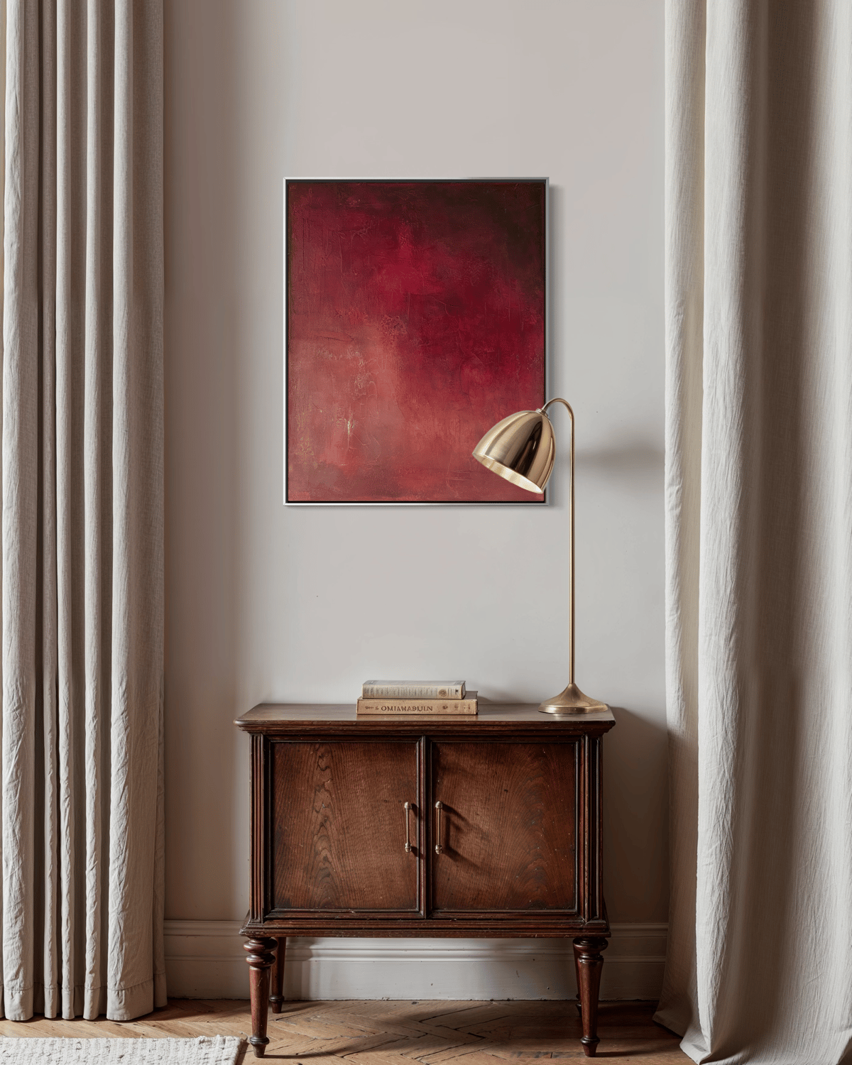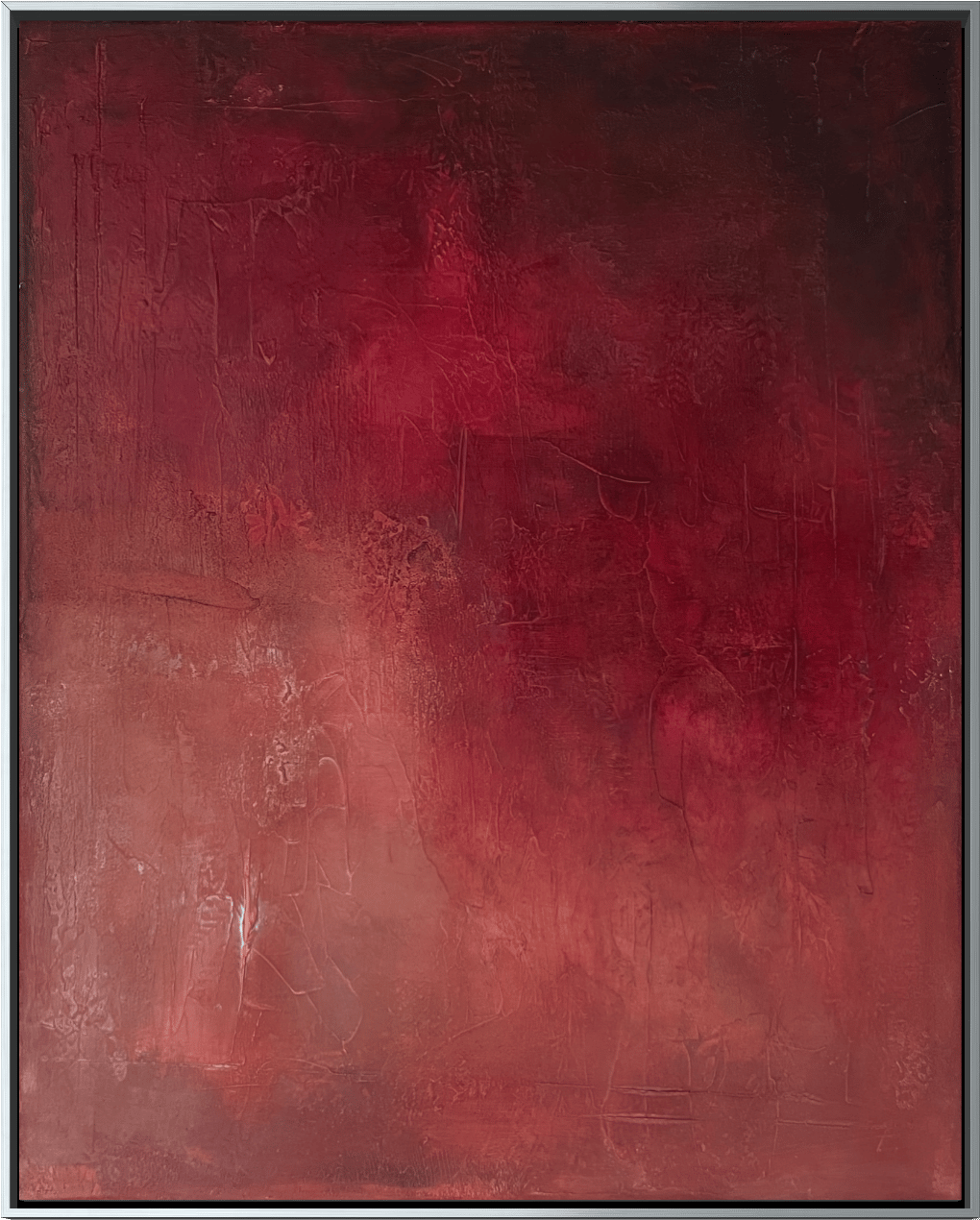 Eclipsed - is a textured acrylic painting where crimson hues fade into shadows, evoking both fire and stillness. The layered matte surface gives depth and tactility, inviting viewers to linger in its quiet intensity. This piece speaks of hidden strength, passion, and transformation.
